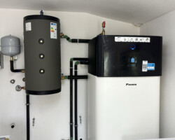 Recentemente, realizámos uma instalação de bomba de calor, uma solução eficiente para a produção de água quente sanitária e aquecimento central através de radiadores. Este sistema é ideal para garantir temperaturas agradáveis nos meses mais frios, proporcionando conforto e bem-estar.