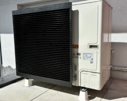 A caldeira existente foi substituída pela Bomba de Calor Daikin Altherma 3R, uma solução eficiente que utiliza a energia do ar exterior para aquecer a residência e fornecer Água Quente Sanitária (AQS). Esta bomba de calor funciona em conjunto com os radiadores existentes garantindo um conforto térmico consistente.