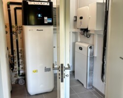 O cliente já possuía radiadores e pretendia reduzir a sua dependência da rede elétrica, maximizando o uso da energia solar produzida. A substituição da caldeira existente por uma solução mais eficiente e a integração de novas tecnologias para melhorar a eficiência energética da habitação foram os principais desafios.