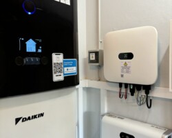 Para aumentar a autonomia e otimizar o uso da energia solar, foram instaladas baterias de armazenamento com 10 kWh, permitindo o uso da energia armazenada durante a noite ou em momentos de baixa produção solar.