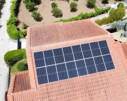 Foi instalado um Sistema Solar Fotovoltaico com 6 kWp para capturar a energia solar e convertê-la em eletricidade, fornecendo energia à bomba de calor e ao restante da casa.