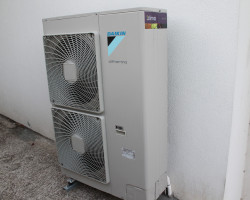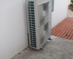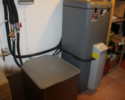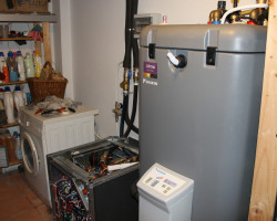 Substituição do sistema de aquecimento com redução do custo mensal de 75%. Para climatização desta moradia o nosso cliente pretendia instalação de uma salamandra a pellet em funcionamento paralelo com o sistema já existente de caldeira mural a gás e radiadores, que fosse económico e que praticamente não tivesse trabalho de manutenção por parte do utilizador, com necessidades só de aquecimento e águas quentes sanitárias. Atendendo à necessidade do cliente e à sua disponibilidade sugerimos um sistema de bomba de calor de alta temperatura interligado com sistema solar. Conseguimos assim através de um estudo correcto das necessidades do cliente, instalar um sistema de climatização que utiliza energias mais amigas do ambiente.