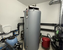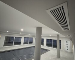 Neste projeto, implementámos um sistema integrado que assegura o aquecimento da piscina interior, a desumidificação e a climatização da nave. Além disso, o sistema também permite a produção de água quente sanitária e o aquecimento da habitação, tudo a partir de um controlo centralizado. Utilizámos a unidade de tratamento de ar HeatStar, que se destaca pela sua capacidade de regular simultaneamente a temperatura da água, do ar e a humidade, prevenindo condensações e criando um ambiente saudável e confortável.